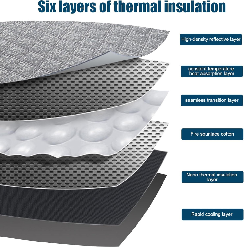 • 6 rétegű védelmi rendszer: Magas sűrűségű reflexív réteg, állandó hőmérséklet-abszorpciós réteg, zökkenőmentes átmeneti réteg, tűzálló spunlace pamut, nano hőszigeteléses réteg és gyors hűtési réteg