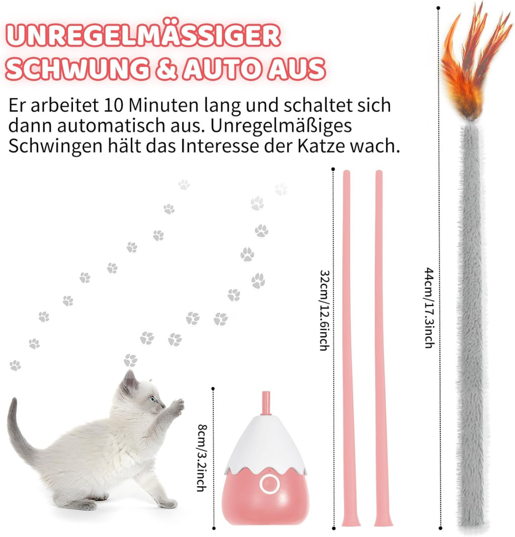 A játék két különböző farok típussal rendelkezik – puha plüss és rugalmas szilikon – amelyek különböző sebességgel mozognak. Ez lehetővé teszi, hogy kiválassza azt a típust, amely a legjobban megfelel macskája személyiségének és játékstílusának. Az automatikus működés azt jelenti, hogy macskája akkor is játszhat, amikor Ön dolgozik vagy pihen.