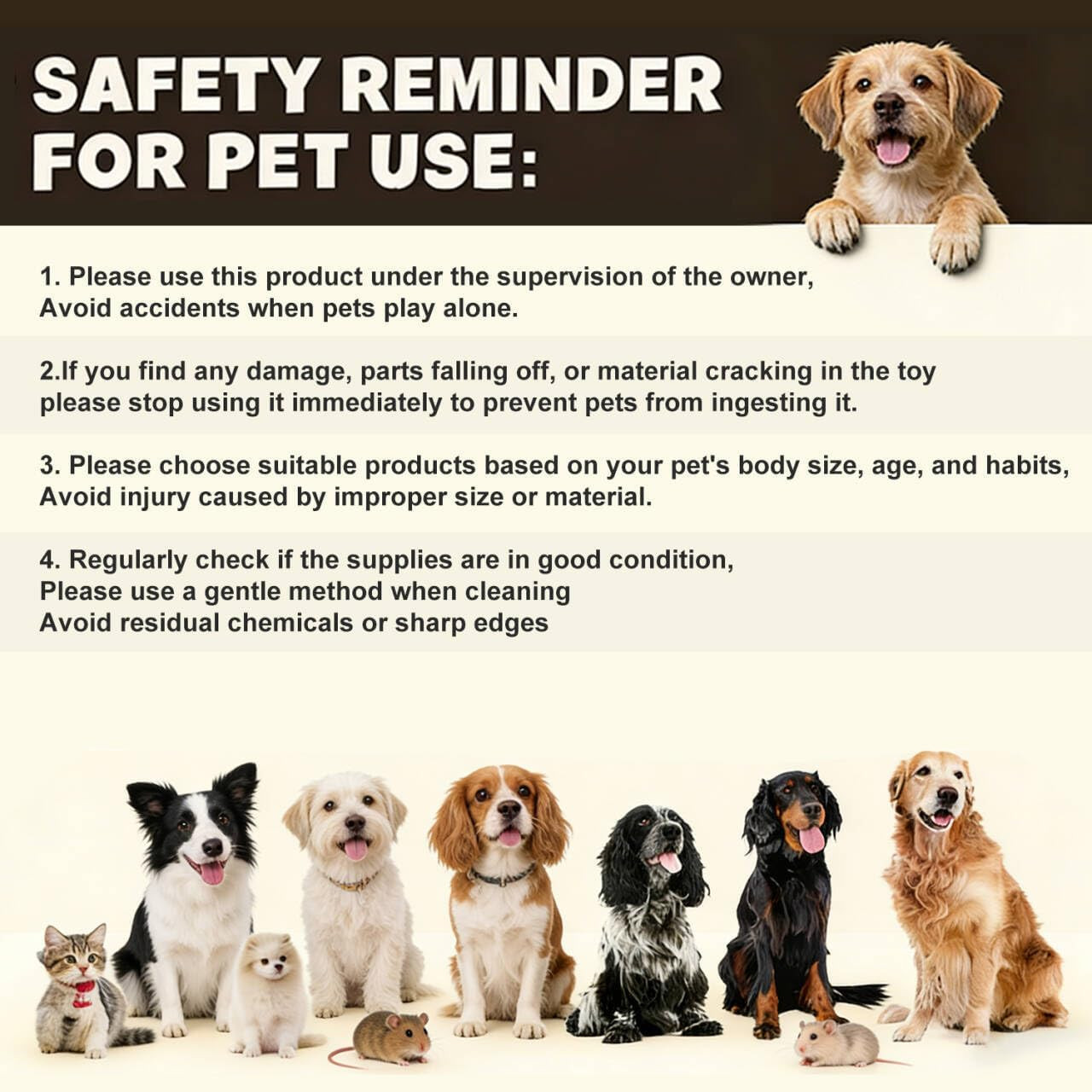 Amikor a háziállatai rágják vagy húzzák a terméket szájukkal vagy karmaikkal, megfelelő felügyeletet biztosítson. Ha a termék megsérül és a háziállat véletlenül lenyelné az anyagot, azonnal forduljon állatorvoshoz.