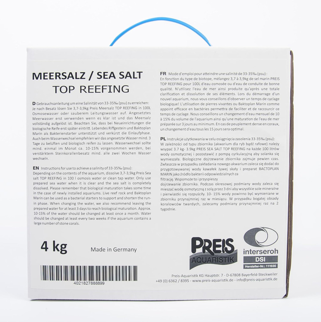 În general, sarea de mare Preis 164 este o alegere de calitate premium, recomandată în special acvariștilor care dețin corali și care doresc să asigure cel mai natural mediu posibil pentru vietățile marine.