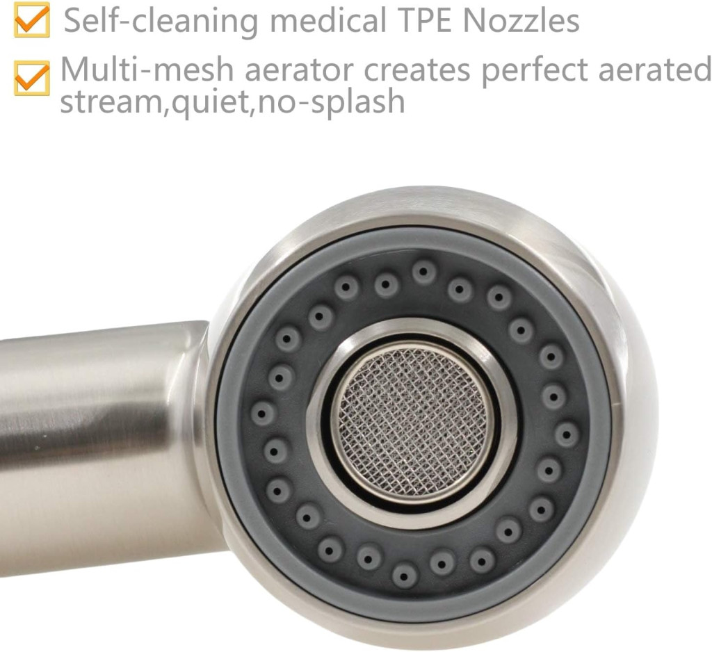 Acest cap de robinet de bucătărie este o soluție ideală pentru multe sarcini. Este perfect pentru spălarea vaselor, a bolurilor și a ustensilelor de bucătărie, clătirea legumelor și fructelor și curățarea blatului de bucătărie. Modul cu bule asigură o utilizare delicată și economică a apei, în timp ce modul duș oferă o curățare mai puternică cu jet de apă pentru îndepărtarea murdăriei încăpățânate. Pentru orice sarcină de bucătărie, Beelee F103-SP este un ajutor de încredere și eficient.