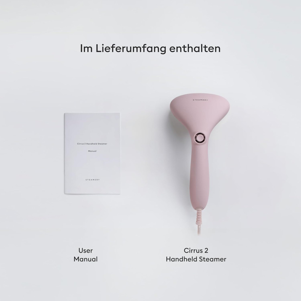 Steamery Cirrus 2 Fier vertical de călcat cu abur 1500W - Încălzire rapidă în 20 secunde, Putere abur 15g/min, Portabil, Ergonomic, Design Scandinav, Roz