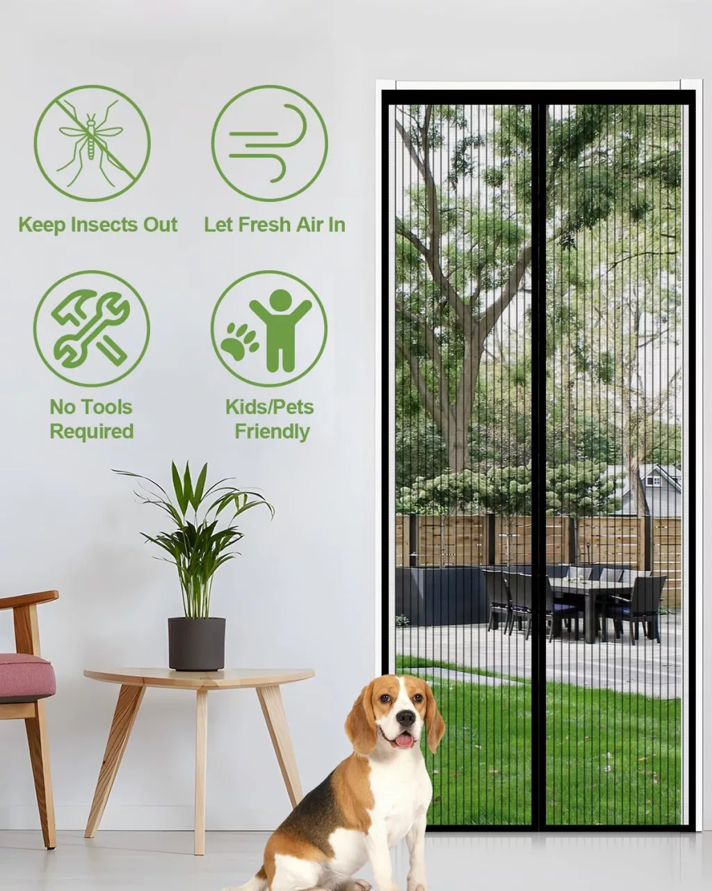 Confort de vară: Deschideți ușa, lăsați aerul proaspăt să intre și bucurați-vă de o vară fără insecte. Plasa anti-țânțari Auxmir este alegerea perfectă pentru cei care iubesc ventilația naturală, dar nu le plac țânțarii și alte insecte.