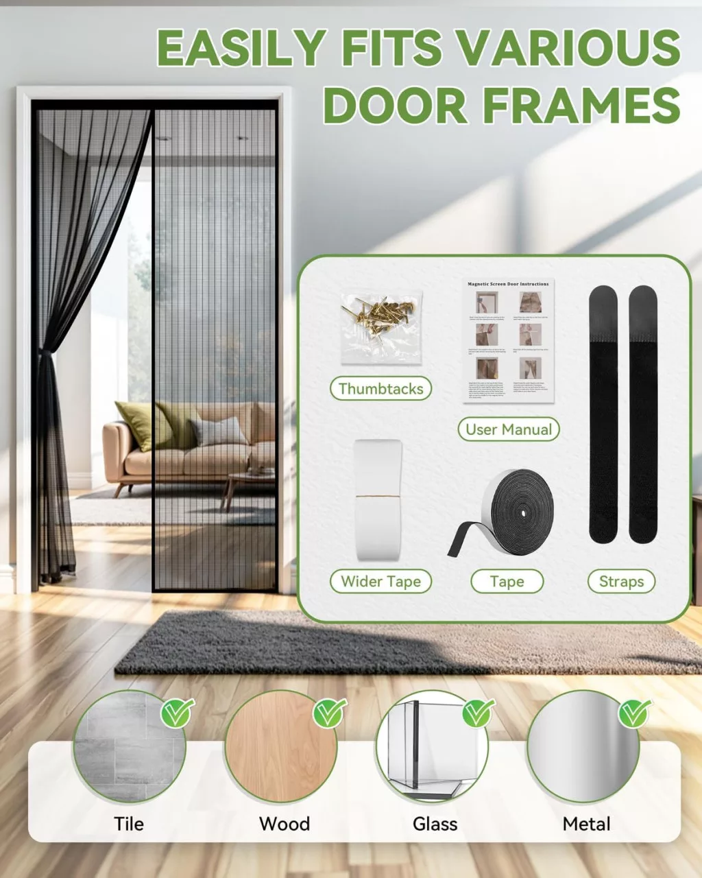 Confort de vară: Deschideți ușa, lăsați aerul proaspăt să intre și bucurați-vă de o vară fără insecte. Plasa anti-țânțari Auxmir este alegerea perfectă pentru cei care iubesc ventilația naturală, dar nu le plac țânțarii și alte insecte.