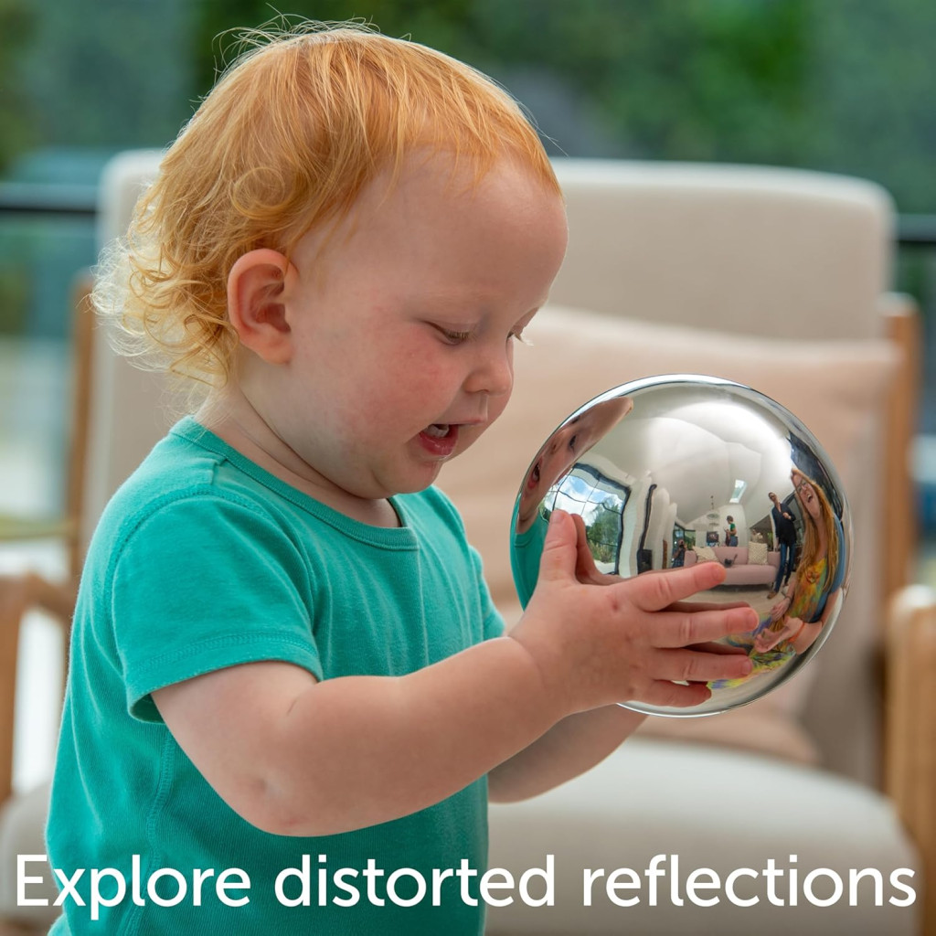 A TickiT 72201 Sensory Reflective Silver Balls egy innovatív szenzoros játékszett, amely teljesen biztonságos csecsemőknek és kisgyermekeknek születéstől. Ez a különleges gyűjtemény négy különböző méretű, tükrös felületű fém labdából áll, amelyek egyedi hangokat és mozgásokat produkálnak. A halszem-tükör felület lenyűgöző vizuális élményt nyújt, amely különösen vonzó a speciális szükségletű gyermekek számára is.