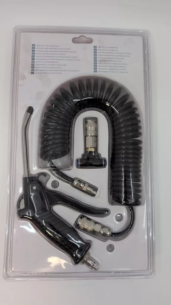 - Conține: Pistol de suflat, furtun spiralat, racord tip T, racord rapid