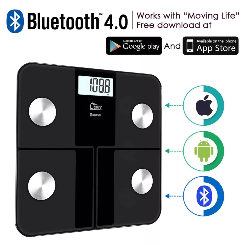 Cântarul Uten funcționează cu aplicația gratuită "Moving Life", care poate fi descărcată din Apple App Store și Google Play Store. Aplicația acceptă versiuni Android 4.3 și iOS 7.0 sau mai noi. Tehnologia Bluetooth 4.0 asigură o conexiune rapidă și stabilă cu dispozitivele inteligente. Aplicația afișează tendințe grafice în timp, permițându-vă să monitorizați progresul pe termen lung.