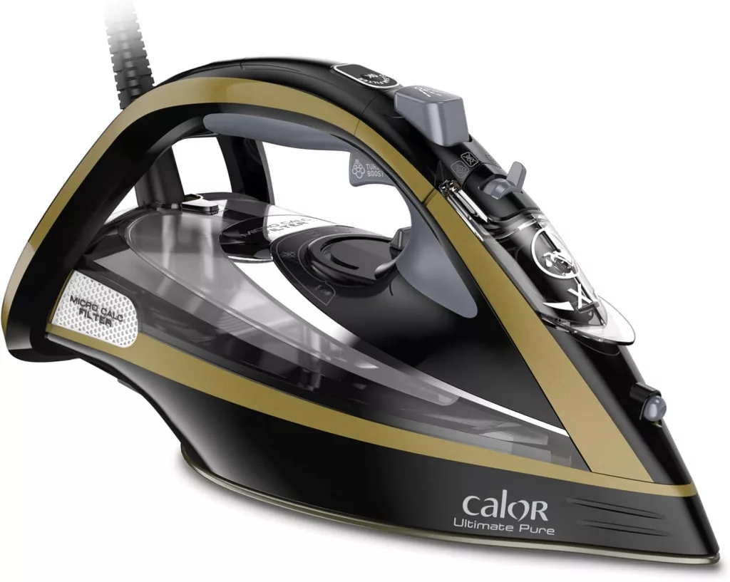 A Calor Ultimate Pure gőzvasaló a professzionális vasalás új szintjét képviseli otthoni használatra. Ez a 3000 wattos teljesítménnyel rendelkező készülék az exkluzív Micro Calc szűrőrendszerrel kombinálva garantálja a foltmentes vasalást és a hosszú élettartamot. Az Ultimate Pure modell a Calor legerősebb vasalója, amely egyesíti a kivételes gőzteljesítményt egy innovatív kalkkezelő rendszerrel az optimális vasalási eredmények érdekében.