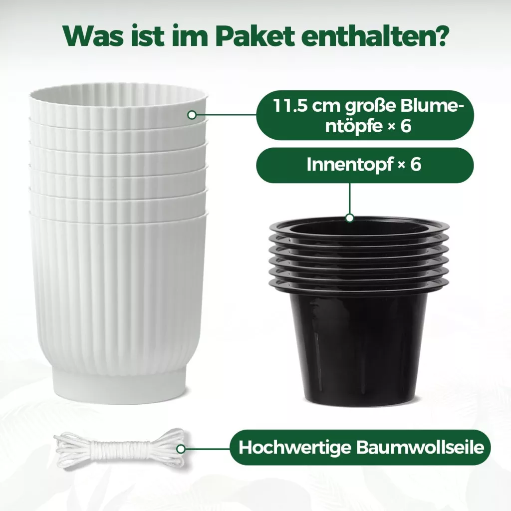 Set 6 Ghivece cu Auto-Udare T4U - Plastic, Dimensiune Mică