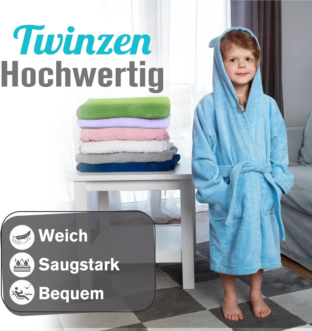 Alegeți halatul de baie Twinzen și oferiți copilului dumneavoastră cel mai bun confort și siguranță după baie. Acest produs este cadoul perfect pentru o zi de naștere, Crăciun sau orice altă ocazie în care doriți să arătați că vă pasă de bunăstarea copilului.