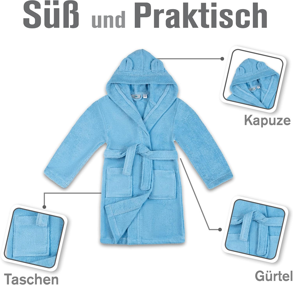 Hanoracul de baie pentru copii Twinzen este prima alegere a părinților care caută cea mai bună calitate și siguranță. Cu certificare Oeko-Tex®, este garantat fără substanțe chimice, iar materialul 100% bumbac este moale și confortabil. Designul atent, care include gluga cu urechi și buzunarele practice, asigură că copilul nu numai că va fi în siguranță și confortabil, ci se va și distra. Materialul durabil și îngrijirea ușoară înseamnă că acest halat de baie va dura mulți ani, chiar și pentru mai mulți copii.
