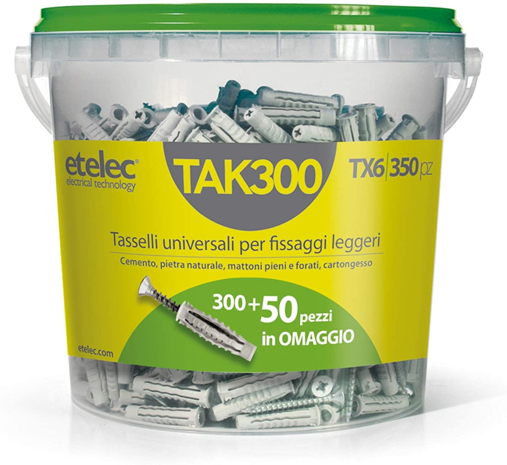 Bucket Box Kit 350 Universal Plugs este un set de dibluri și șuruburi de calitate profesională, livrat într-un ambalaj de 350 de bucăți. Această soluție universală este alegerea ideală pentru renovări casnice, lucrări de întreținere și proiecte de construcții profesionale. Setul conține 300 de dibluri și șuruburi din nailon TX6, plus 50 de perechi de dibluri și șuruburi bonus.