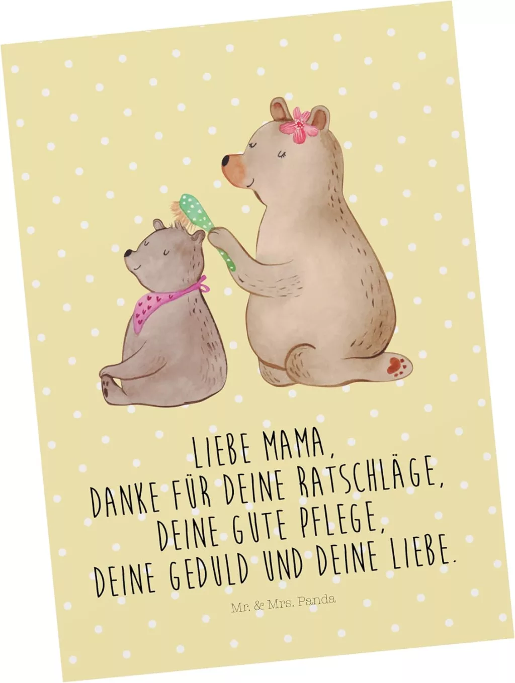 Marca Mr. & Mrs. Panda garantează calitatea excelentă și designul unic. Această felicitare este alegerea perfectă pentru toți cei care doresc să trimită un mesaj special, personal celor dragi. Motivul urs cu pui este un limbaj universal al iubirii, care este înțeles și emoționant pentru toate vârstele.