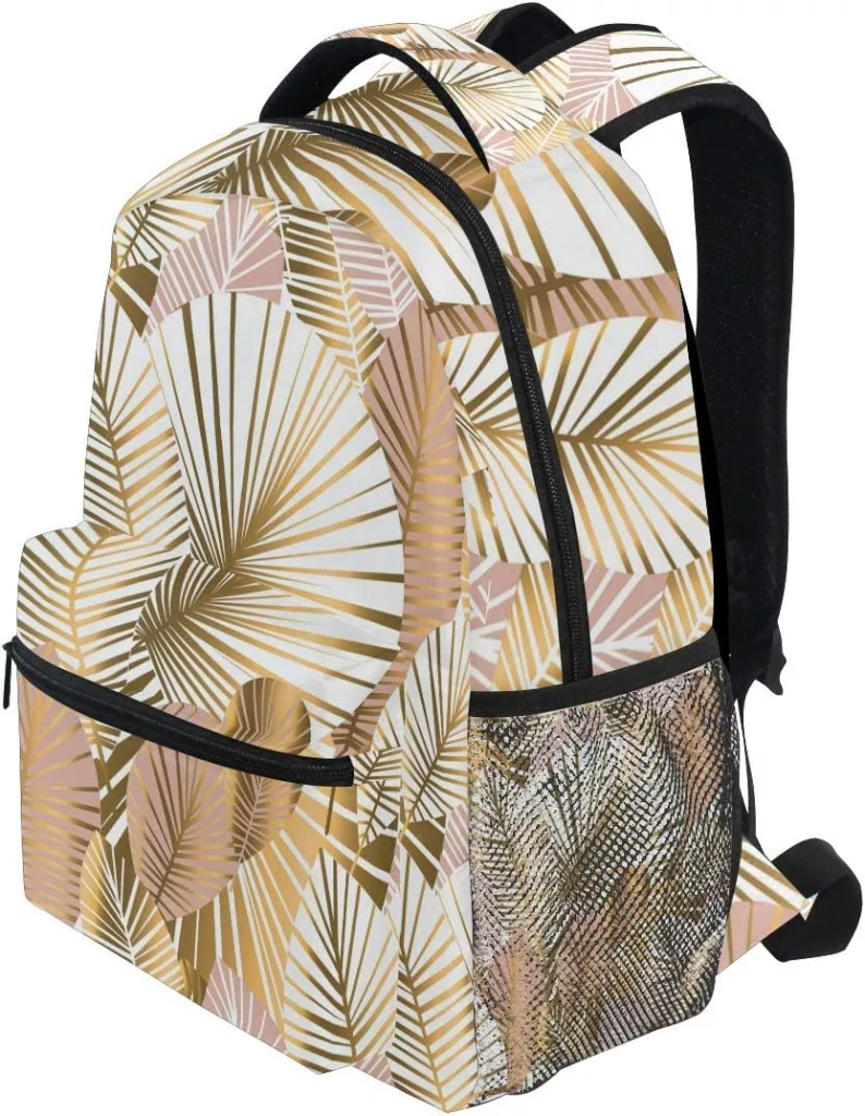 Ghiozdan cu Model de Frunze Tropicale Aurii pentru Băieți și Fete