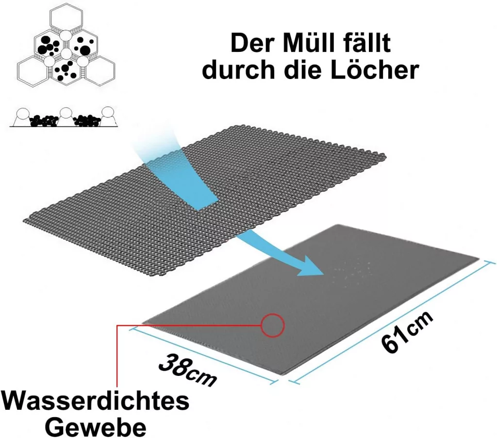 Cu dimensiunile sale de 61 x 38 cm, este suficient de mare pentru a capta eficient nisipul, indiferent cât de activă este pisica în timpul folosirii litierei.