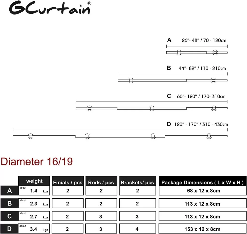 • Set complet: Pachetul include 2 bare de perdea, 2 console, 2 capete și toate accesoriile necesare pentru montare