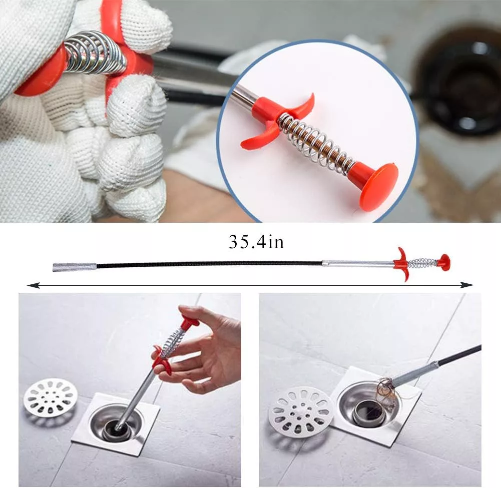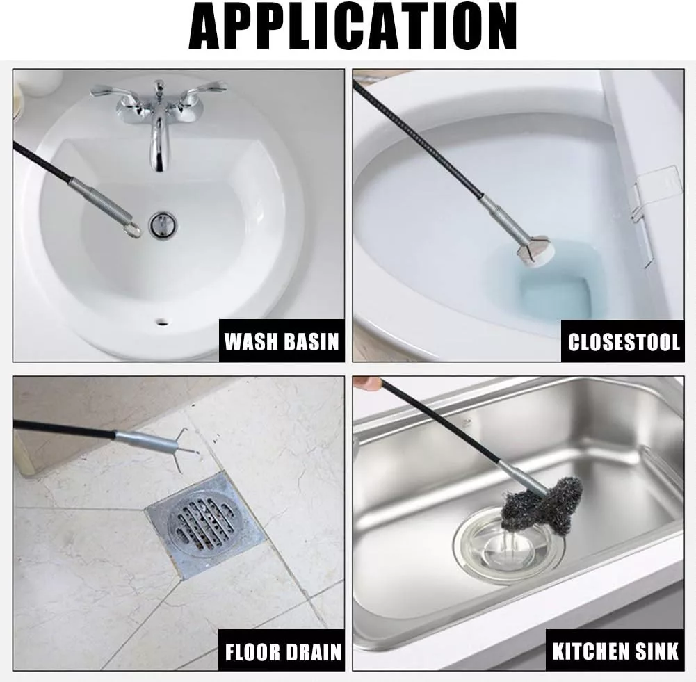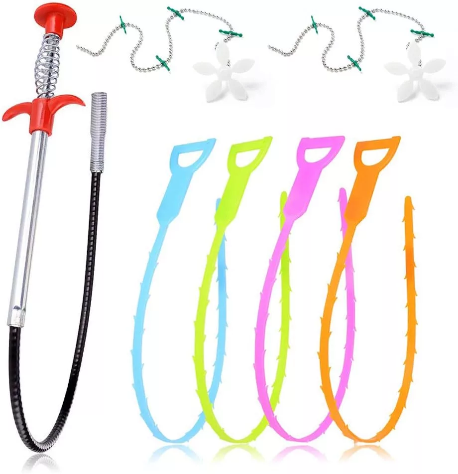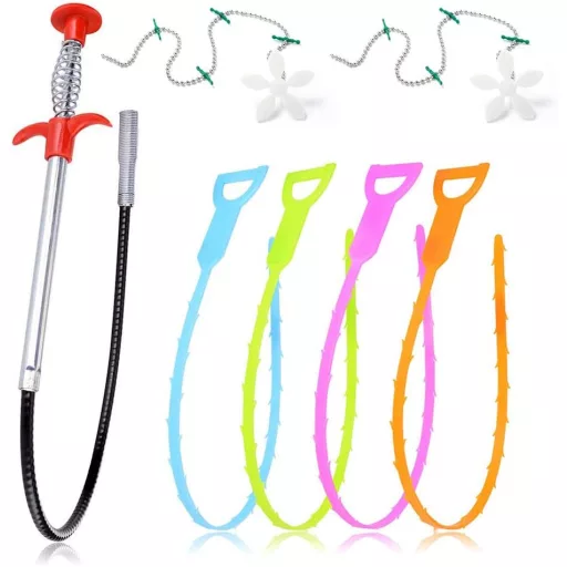 Set de curățat țevi Sukudon, 7 piese, cu șarpe de canalizare din oțel inoxidabil și plastic