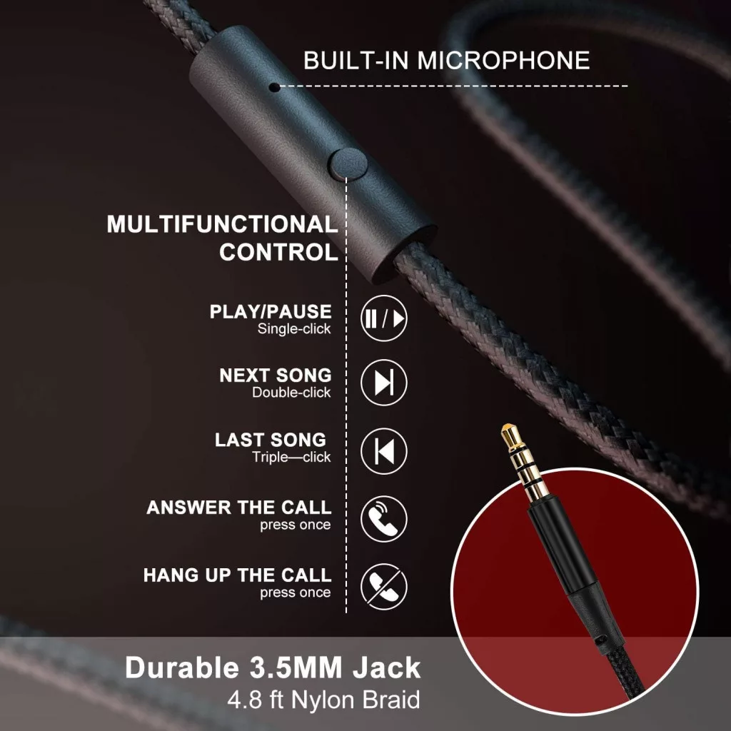 Microfonul încorporat permite gestionarea confortabilă a apelurilor, în timp ce controlul inline vă ajută să reglați cu ușurință volumul și muzica. Cablul împletit din nailon este durabil și nu se încâlcește, astfel încât va rămâne fiabil mult timp.