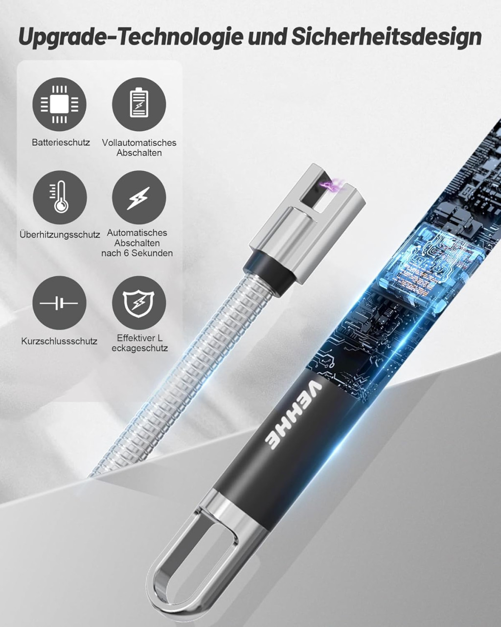 VEHHE Arc Lighter are un sistem de siguranță pe mai multe niveluri, care garantează utilizarea sigură în toate circumstanțele: