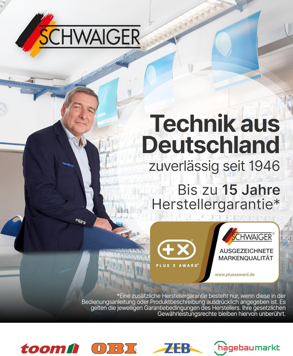 Dispozitivul este un simbol al calității și inovației reprezentate de marca SCHWAIGER încă din 1946. Cu o experiență de peste 75 de ani, acest produs garantează fiabilitatea și prelucrarea excelentă.