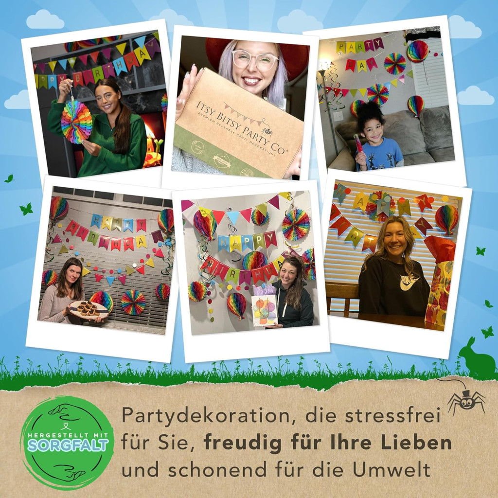 Set Decorativ Curcubeu pentru Petrecere de Ziua de Naștere Itsy Bitsy Party Co - Ghirlandă de Hârtie Reutilizabilă, Globuri Tip Fagure, 18 Piese Decorațiuni de Petrecere