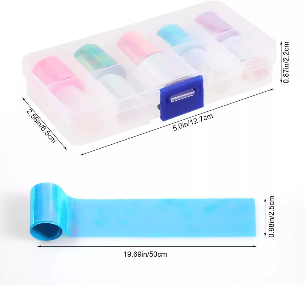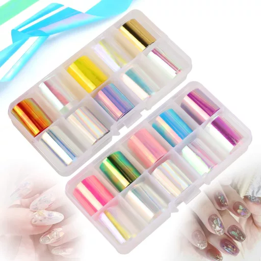 - ✨ Set complet: 20 de role diferite de folie holografică într-o cutie practică de depozitare