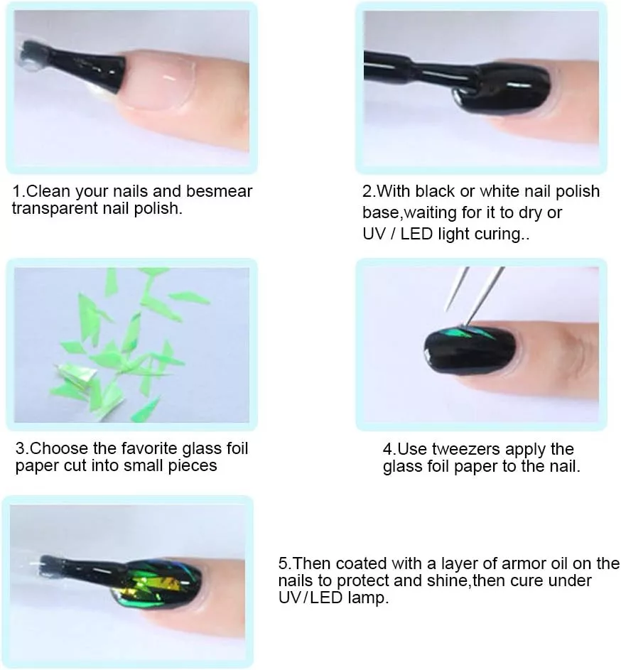 Le poți folosi pentru a crea o manichiură de calitate profesională acasă, pentru a te pregăti pentru ocazii speciale sau chiar în saloanele profesionale de unghii. Datorită structurii lor subțiri și flexibile, foliile se potrivesc perfect curburii unghiei, asigurând un efect natural. O alegere ideală atât pentru începători, cât și pentru avansați în decorarea unghiilor!