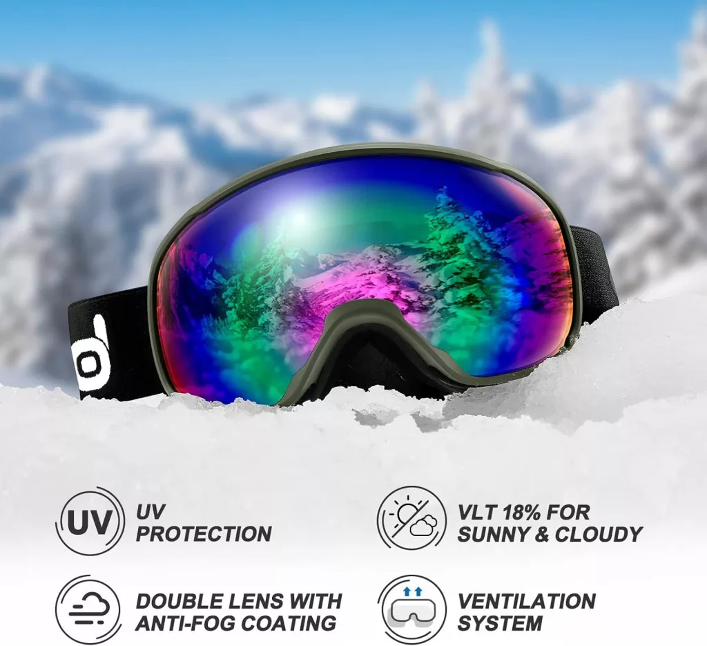 - ???? Compatibil cu ochelari de vedere: Ochelarii de schi sunt suficient de spațioși pentru a putea fi purtați împreună cu majoritatea ochelarilor de vedere.