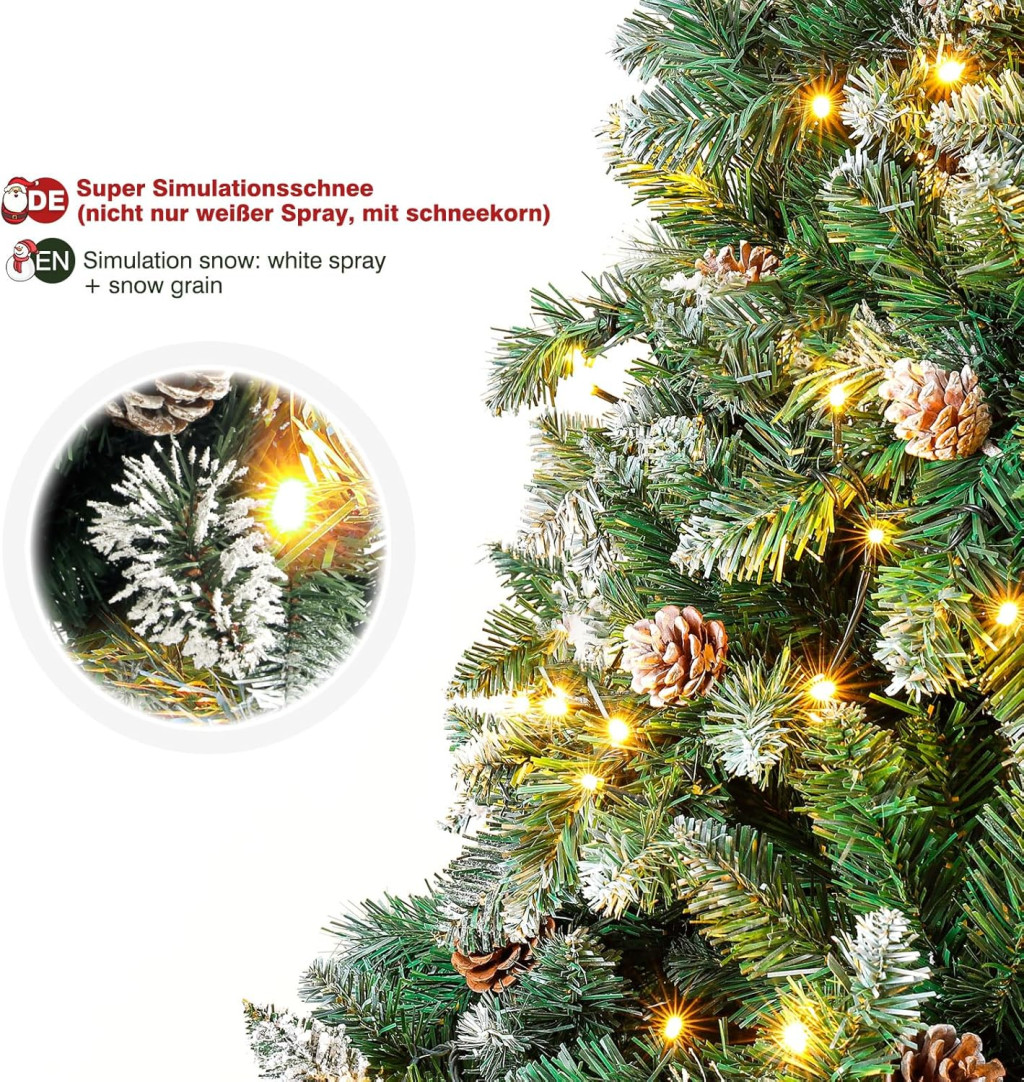 Bradul artificial Yorbay cu iluminare LED și efect de zăpadă este alegerea perfectă pentru cei care caută un brad de Crăciun ușor de utilizat, eficient energetic și cu un aspect realist. Combinația dintre iluminarea integrată, conurile naturale și efectul de zăpadă oferă un aspect special care va aduce bucurie întregii familii an de an. Asamblarea ușoară și cerințele minime de întreținere permit o utilizare fără griji în perioada Crăciunului.