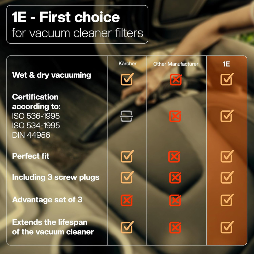 A 1E Kärcher szűrő készlet a piacon az egyik legjobb választás, ha megbízható, gazdaságos és hatékony szűrési megoldást keres. Az eredeti szűrőhöz képest hasonló vagy jobb teljesítményt nyújt, miközben jelentősen olcsóbb. A széles körű kompatibilitás biztosítja, hogy szinte minden Kärcher porszívóhoz megtalálja a megfelelő szűrőt.
