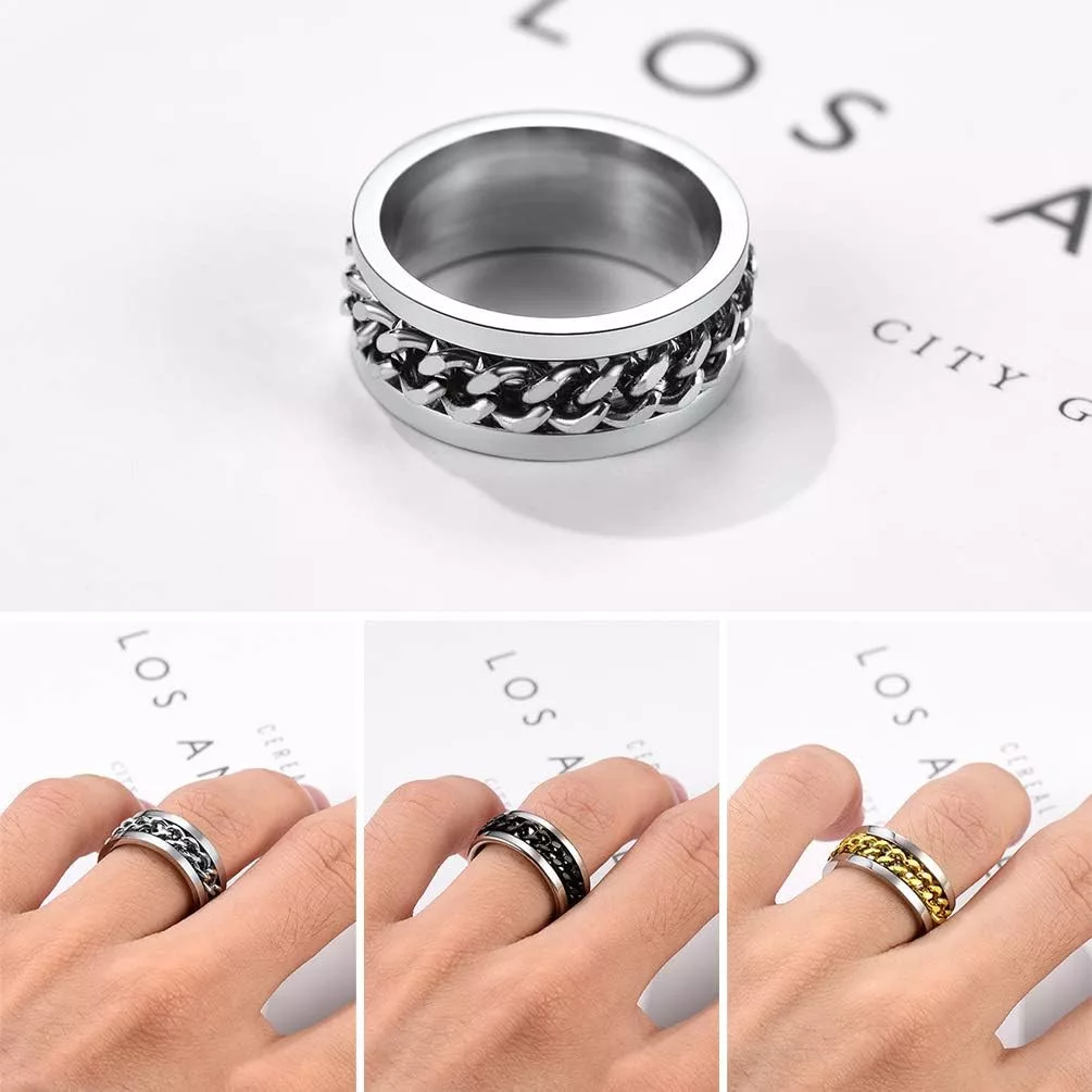 Mecanismul cu lanț rotativ nu este doar distractiv, ci are și un efect de reducere a stresului. Mulți oameni îl folosesc ca instrument de meditație sau relaxare. Designul unisex și stilul gotic asigură faptul că oricine se va simți bine purtând acest inel.