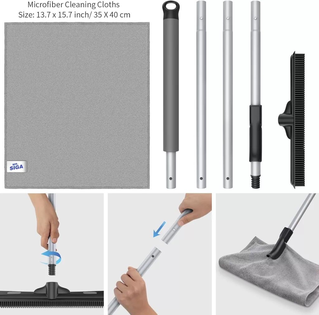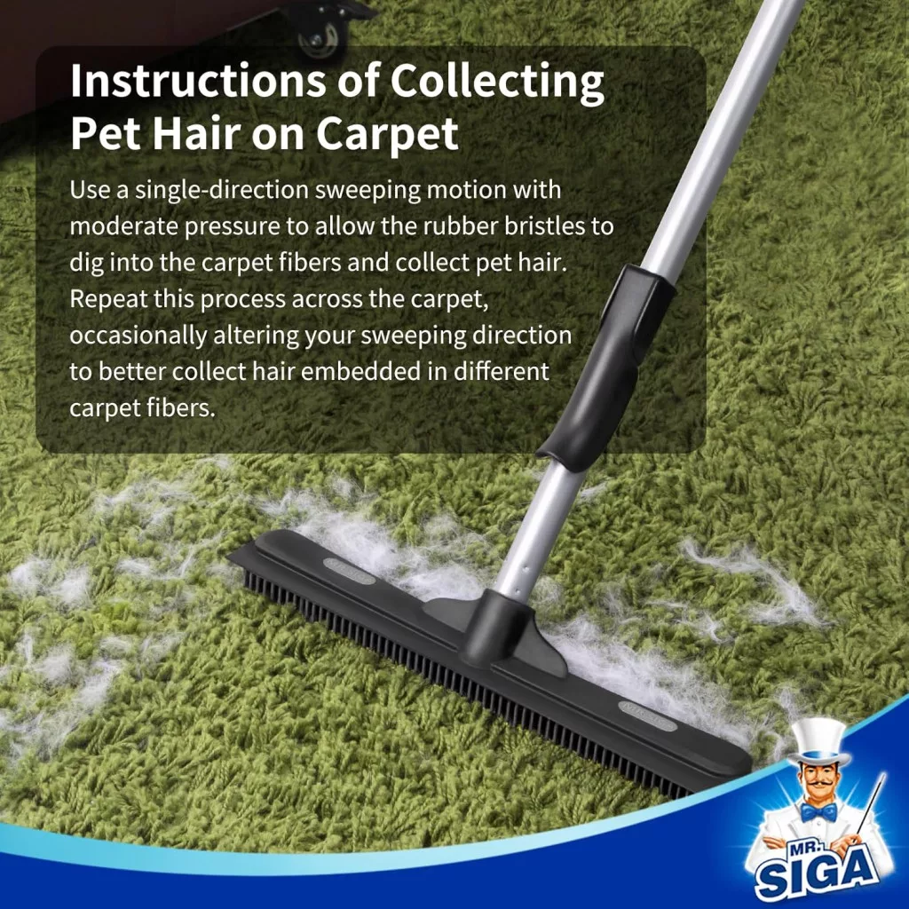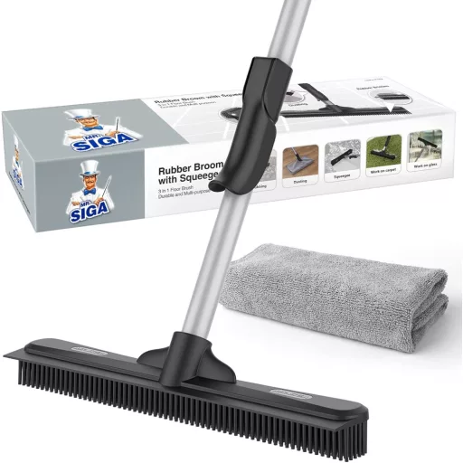 Mătură MR.SIGA cu Inserție de Cauciuc pentru Îndepărtarea Părului de Animale - Instrument de Curățare 3-în-1 Mătură MR.SIGA cu Inserție de Cauciuc pentru Îndepărtarea Părului de Animale