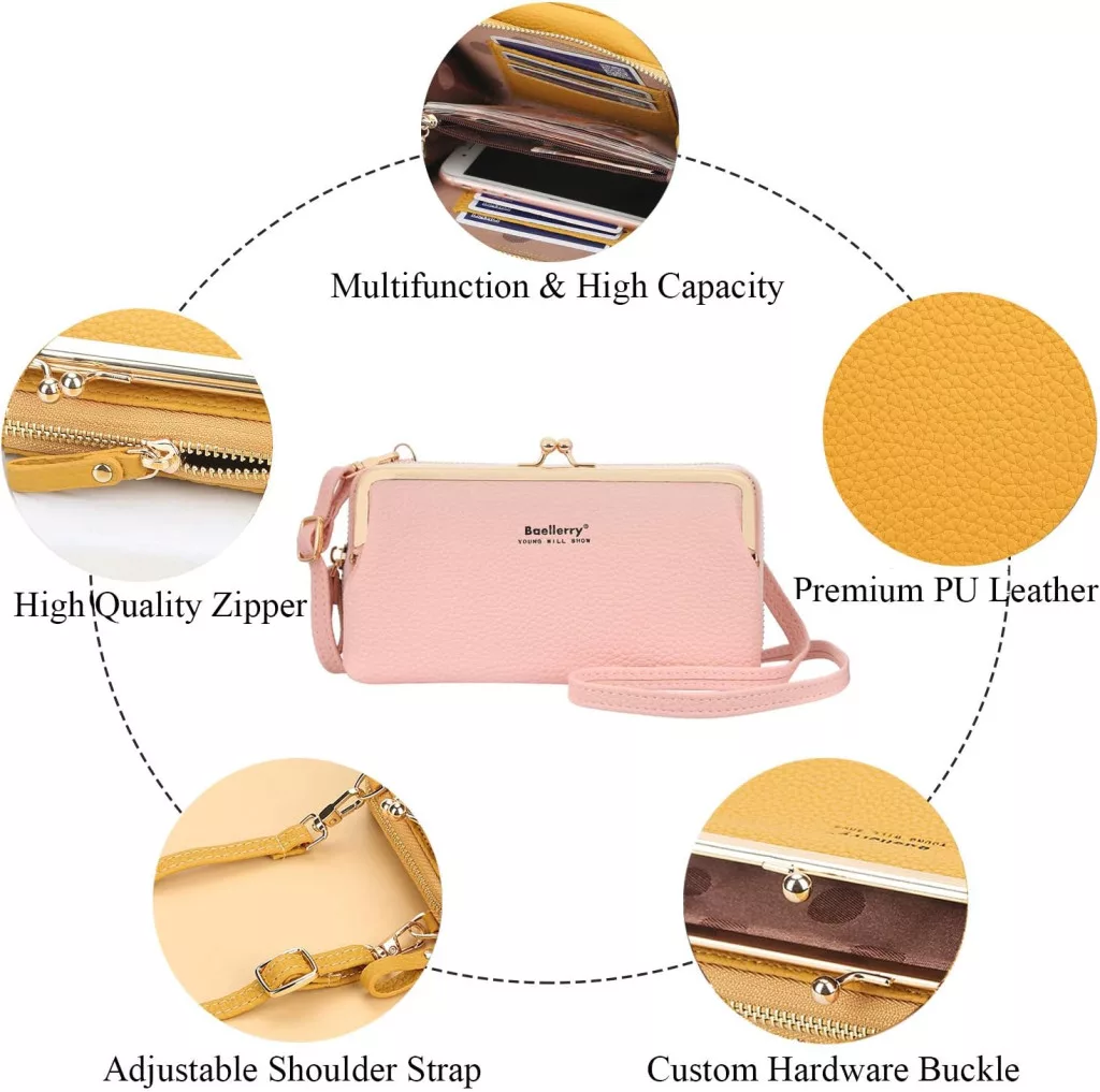 Geantă de Umăr pentru Femei cu Suport Telefon - Piele PU, Roz | Amazon Prezentare Generală a Produsului