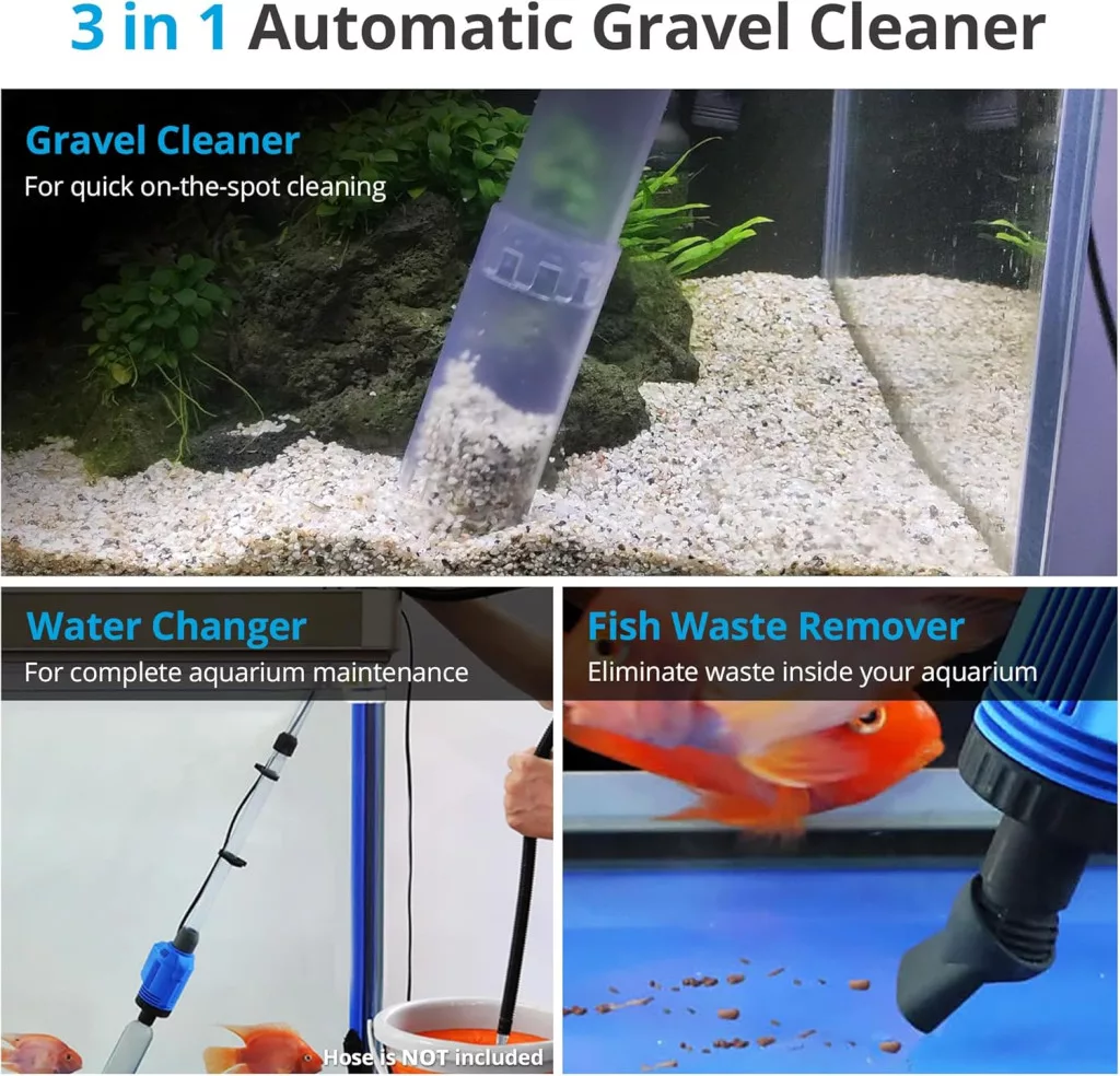 BootyBay Elektromos Akvárium Porszívó - 3 az 1-ben Aljzattisztító, Vízcserélő és Szifonos Kavicstisztító Édesvízi és Sósvízi Akváriumokhoz