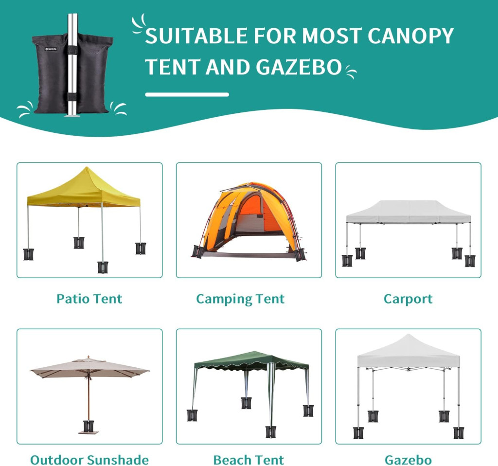 - Corturi Pop-up și Foișoare: Alegerea ideală pentru stabilizarea oricărui cort pliabil sau foișor, în special pe vreme vântoasă.