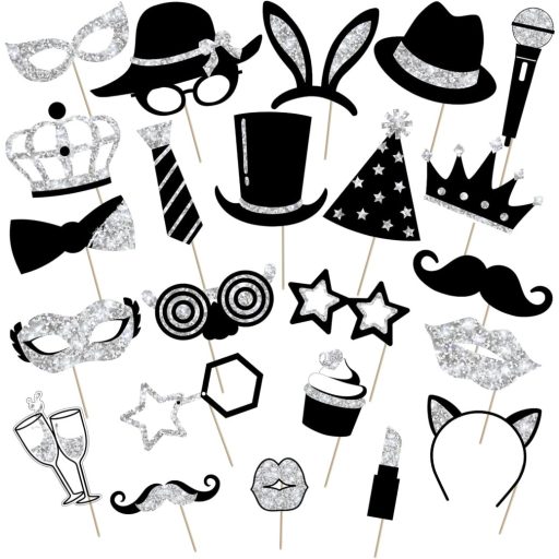 Accesorii Photo Booth pentru Petreceri - Set de 24 de Piese Argintii