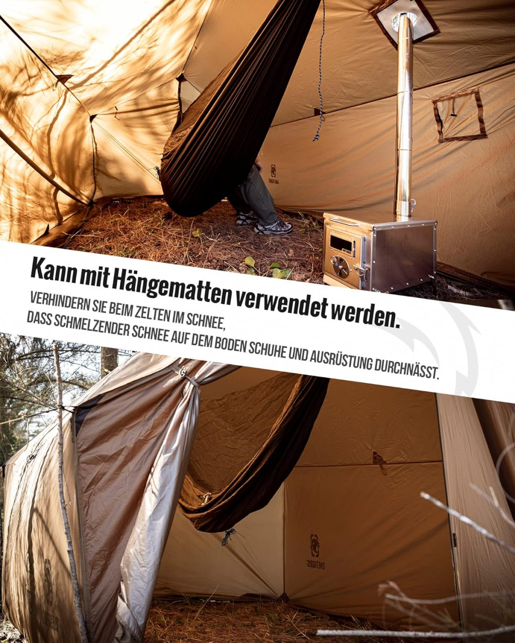 OneTigris TEGIMEN este o soluție revoluționară pentru cei care doresc să facă camping de iarnă cu un sac de dormit confortabil. Acest cort încălzit, de dimensiuni mari, este special conceput pentru saci de dormit, dar poate fi folosit și ca un cort tradițional. Echipat cu o prelată impermeabilă de 3000 mm și orificii inteligente pentru sobă, acest cort garantează protecție maximă și căldură chiar și în cele mai reci condiții meteorologice.