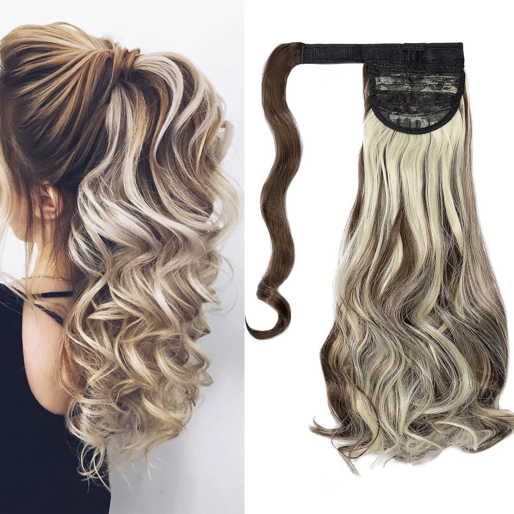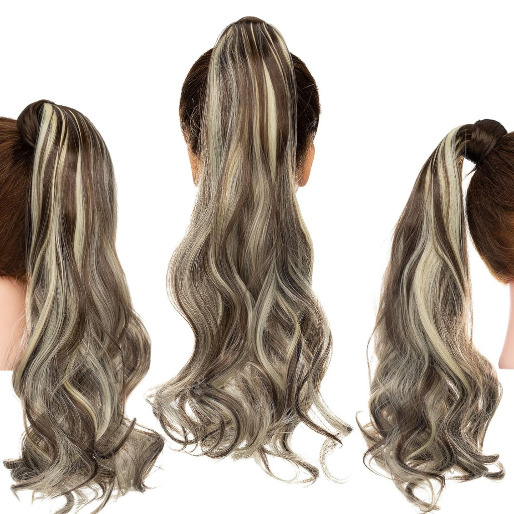 Coadă de cal Cybelleza cu clips, păr sintetic ondulat, castaniu și blond - Extensii de păr pentru volum și lungime, aspect natural, pentru femei