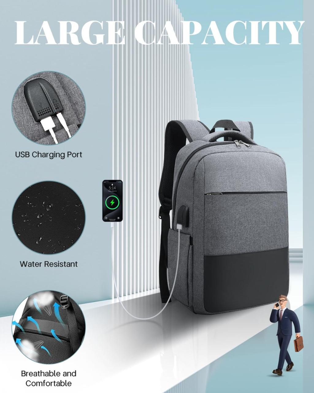 Versatilitatea rucsacului îl face o alegere ideală pentru studenți, angajați de birou și călători. Construcția durabilă și materialele premium garantează o durată lungă de viață, în timp ce designul modern asigură un aspect elegant în orice mediu.