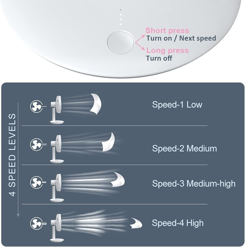 Mini Asztali Ventilátor Töltöttethető 4000mAh - 4 Sebességfokozat