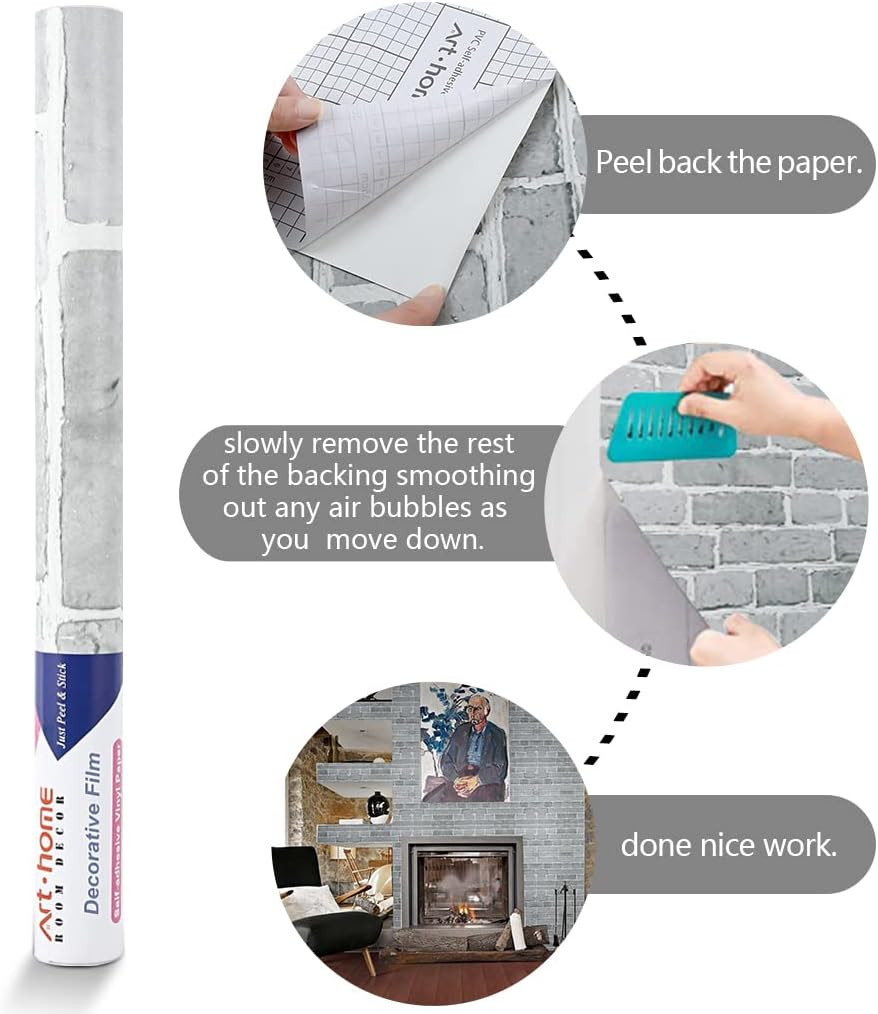 Tapetul autoadeziv tip cărămidă Arthome se aplică simplu și rapid: