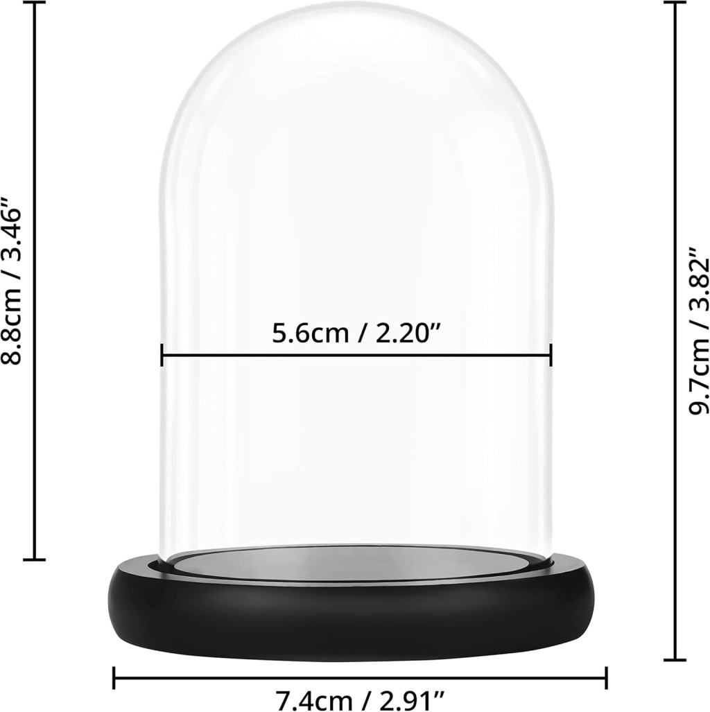 • Sticlă cristalină: Clopotul de sticlă este complet transparent, astfel încât puteți vizualiza cu ușurință obiectele din interior, fără a fi nevoie să le scoateți