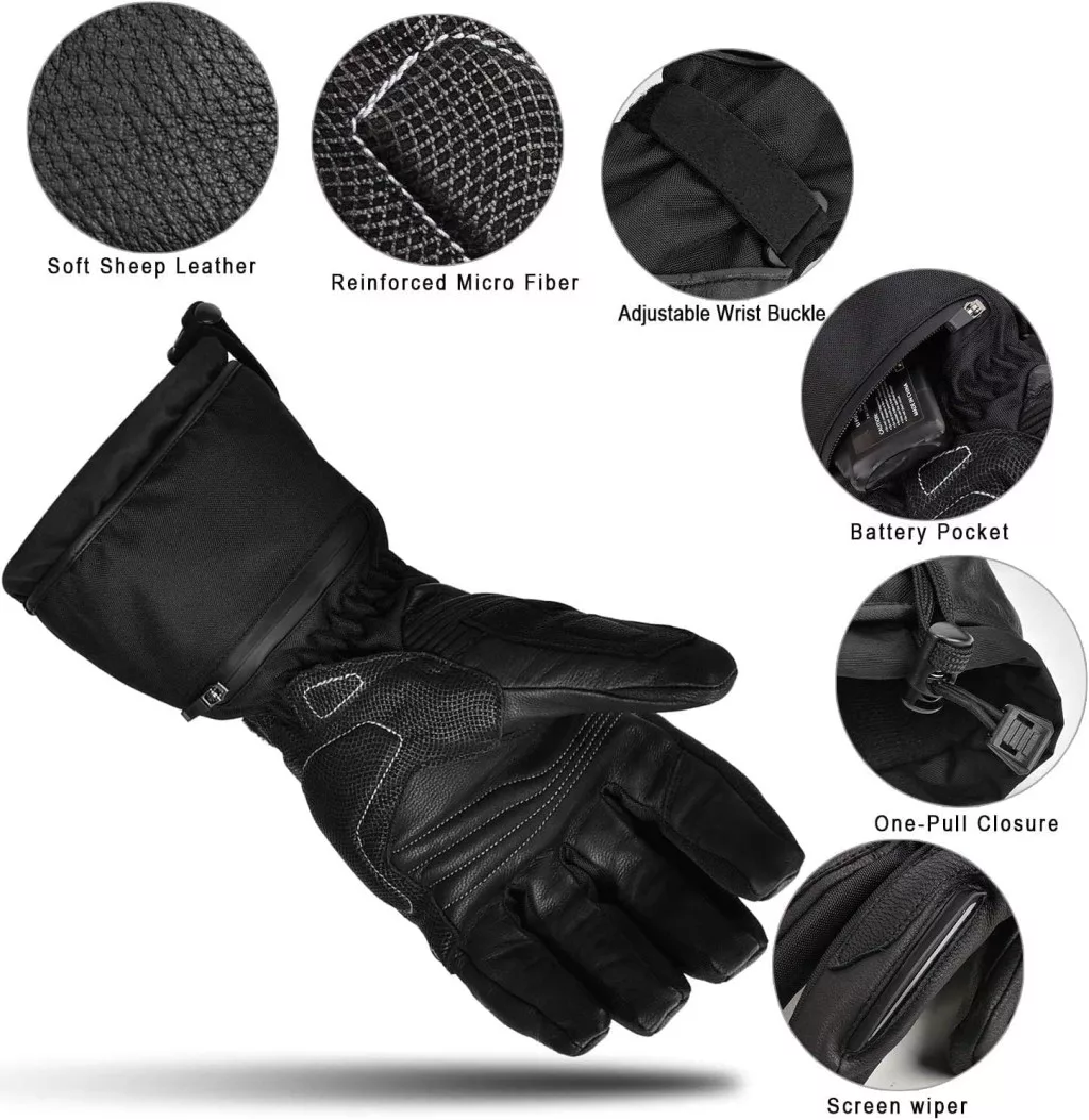 Palma și degetele mănușilor sunt fabricate din piele de oaie moale, care oferă o aderență excelentă pe ghidon sau pe alte dispozitive. Stratul interior de vată izolatoare, elementul de încălzire, membrana impermeabilă și rezistentă la vânt și căptușeala respirabilă din lână confortabilă asigură împreună confort și protecție maximă. Designul cu velcro de la încheietura mâinii este reglabil și protejează complet încheietura mâinii de pătrunderea aerului rece.