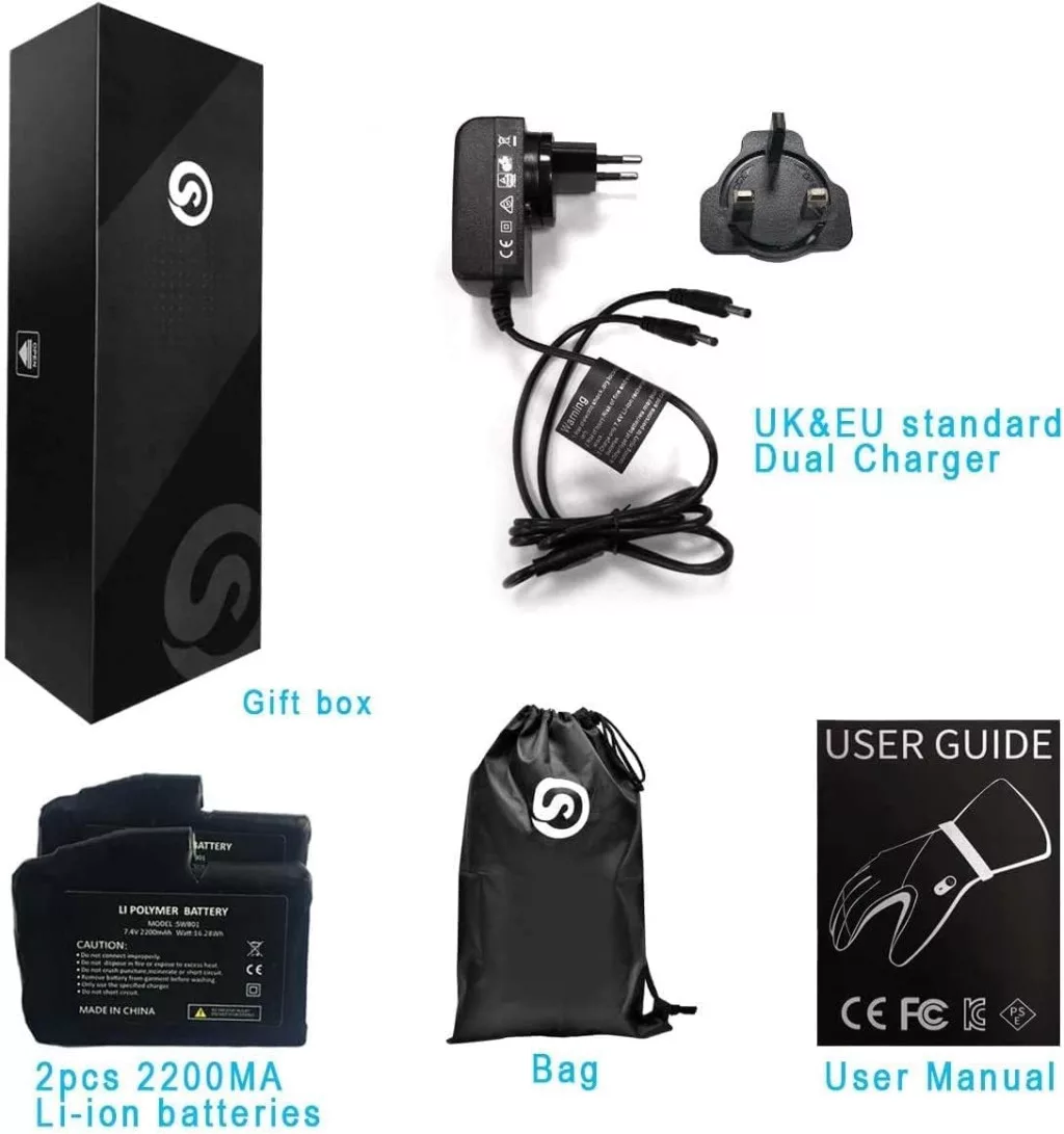 • ???? Baterie de înaltă performanță: Baterii litiu-ion reîncărcabile de 7,4 V 2200 mAh, care asigură 2,5-6 ore de încălzire cu o singură încărcare.