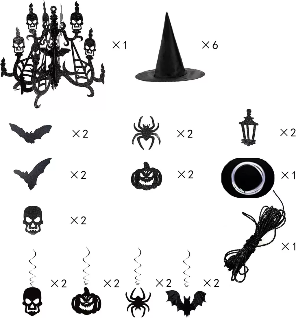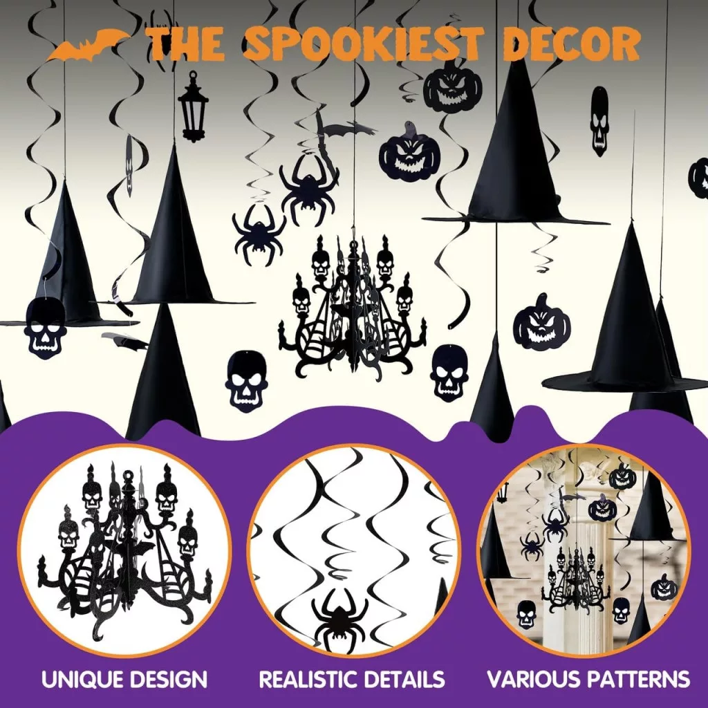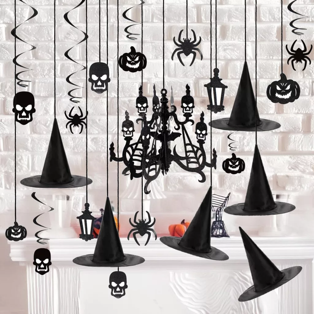 Set 27 decorațiuni suspendate de Halloween JOYIN cu pălărie de vrăjitoare, dovleac, fantomă și păianjen
