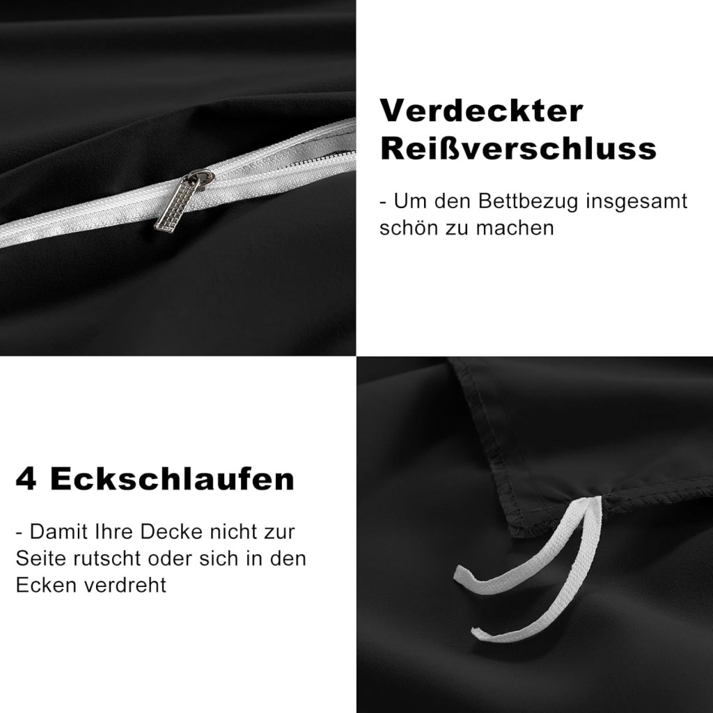 Culoarea negru antracit nu este doar elegantă, ci și practică, deoarece nu scoate în evidență murdăria cu ușurință. Cele 4 benzi de fixare asigură că plapuma nu va aluneca în timpul nopții, iar temperatura de spălare de 30°C este eficientă energetic și blândă cu materialul.