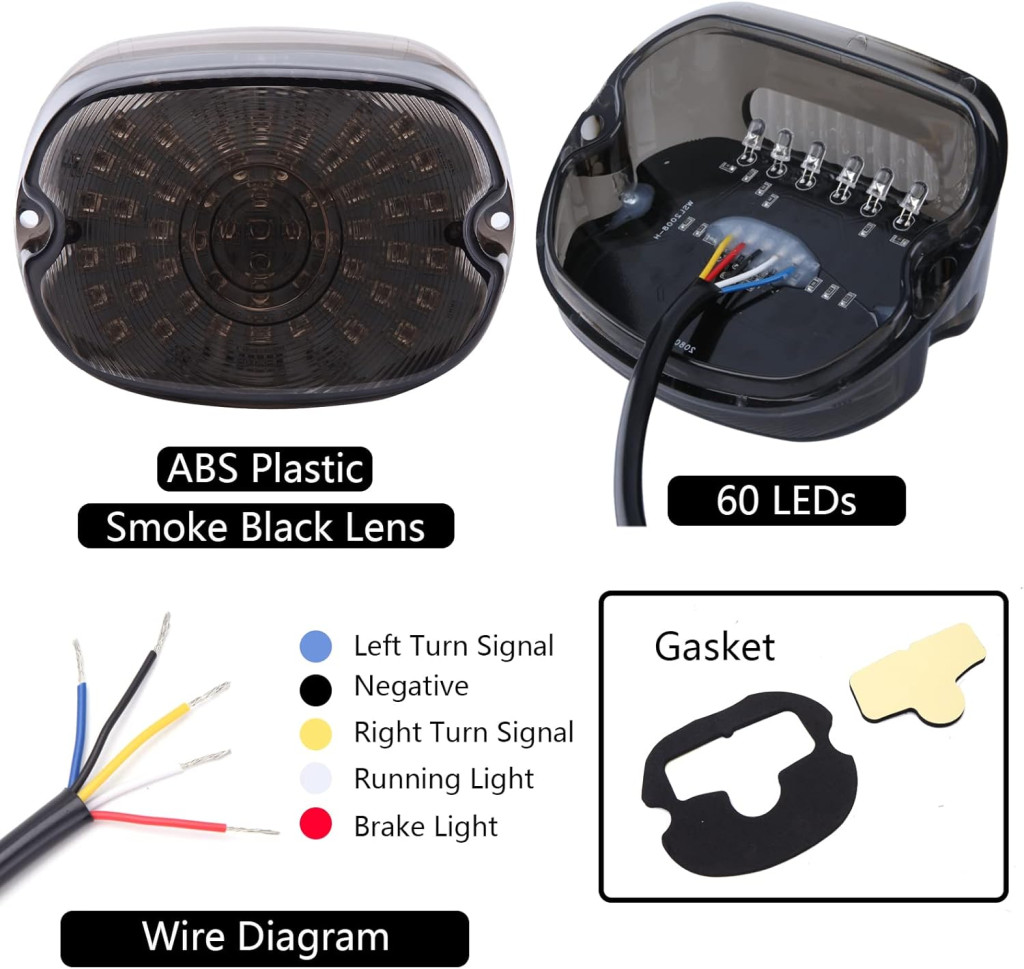 Stopul spate LED JMTBNO este o soluție modernă, integrată, care combină funcțiile de lumină de frână, semnalizatoare, lumină de poziție și iluminare a plăcuței de înmatriculare. Această componentă de calitate premium este proiectată special pentru motocicletele Harley-Davidson, pentru a îmbunătăți siguranța și aspectul estetic. Lentila negru fumuriu și designul cu 60 de diode LED garantează vizibilitatea maximă și un aspect modern, atractiv.
