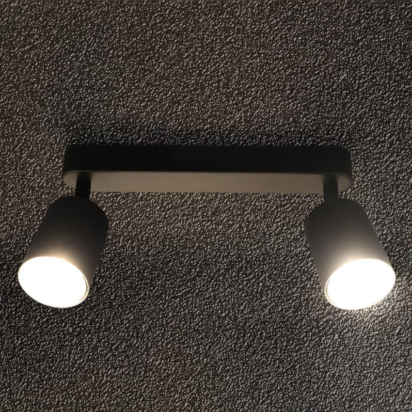 Lampă de plafon cu LED, 2 brațe, spot rotativ, GU10, retro, neagră