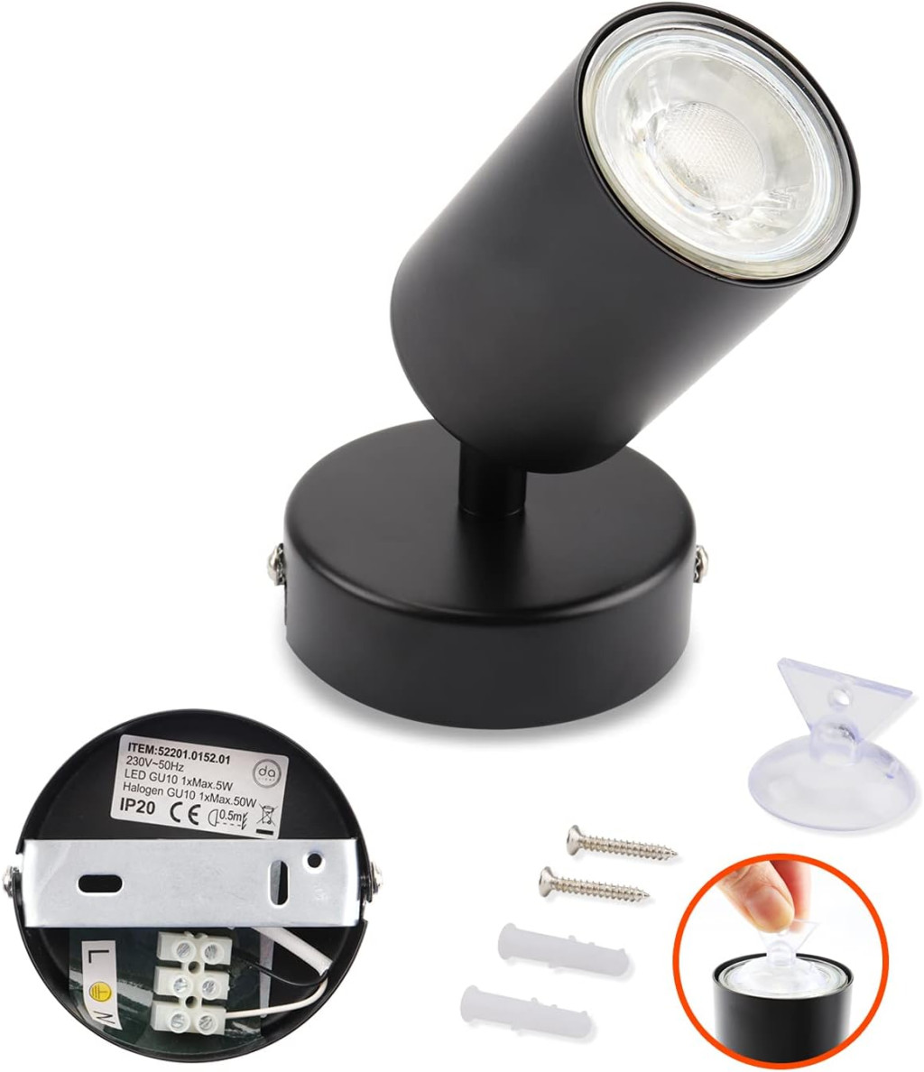DA LIGHT Plafonieră LED, Spot rotativ GU10, Negru, Retro, Living, Dormitor, Bucătărie