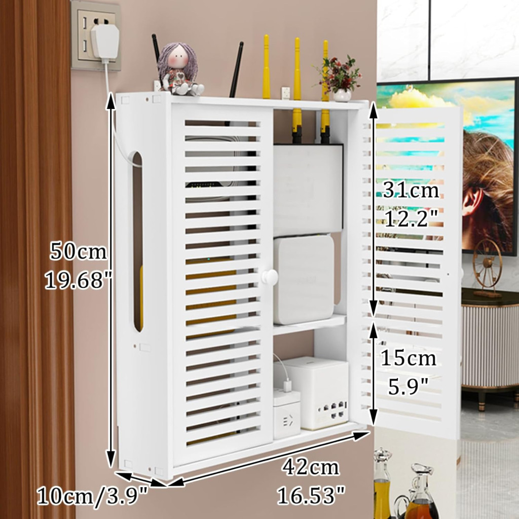 Notă importantă: Cutia de depozitare nu este potrivită pentru toate tipurile de routere. Vă rugăm să verificați dimensiunile exterioare ale routerului înainte de achiziție, pentru a vă asigura că se potrivește în cutia de 42×10×50 cm.